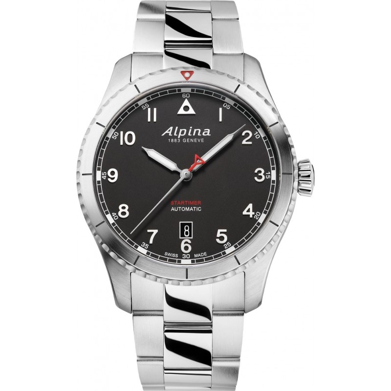 Lo Startimer Pilot Automatic si distingue per il suo bracciale in acciaio inossidabile a 3 maglie, robusto ed elegante al tempo stesso. Il quadrante nero, le lancette in argento lucido e la lancetta dei secondi con la punta rossa aggiungono un tocco di raffinatezza. Il vetro zaffiro bombato antigraffio e il fondello inciso sono la prova della qualità delle finiture.