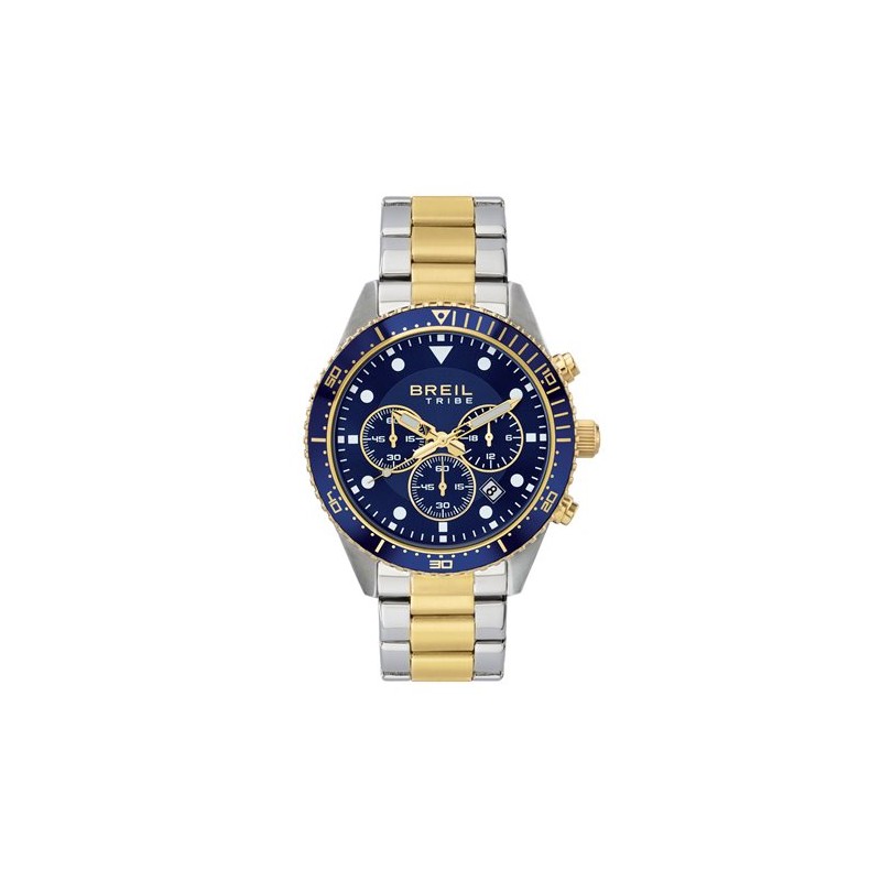 Il cronografo Sail è un perfetto diver da indossare durante le immersioni più avventurose, con la sua resistenza all’acqua fino a 10 atmosfere. Realizzato in acciaio bicolor, color silver e gold, presenta dettagli che hanno il sapore dell'ambiente marinaro. La scelta del blu su quadrante e lunetta, acceso in entrambi da dettagli color gold, ne fanno un orologio sportivo e al contempo modaiolo.
