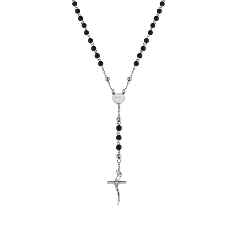 Collana breil da uomo rosario in acciaio ed onice nera con croce breil