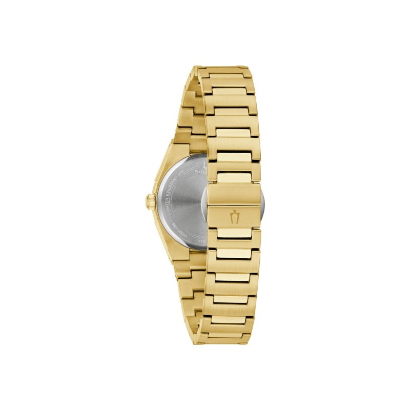 Questo orologio da donna Bulova apporta un nuovo stile alla già sofisticata collezione Sutton.Un'elegante cassa rettangolare in acciaio inossidabile bicolore è abbinata a un braccialetto coordinato.