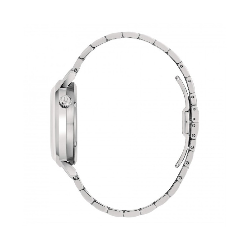 Questo orologio da donna Bulova apporta un nuovo stile alla già sofisticata collezione Sutton.Un'elegante cassa rettangolare in acciaio inossidabile color argento e abbinata a un braccialetto coordinato.