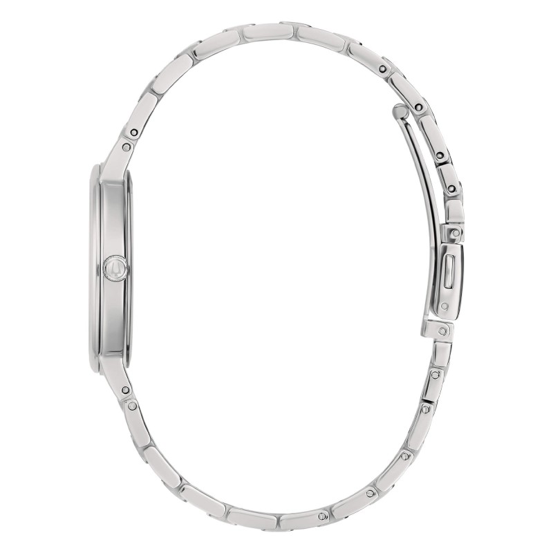 Questo orologio da donna Bulova apporta un nuovo stile alla già sofisticata collezione Sutton.Un'elegante cassa rettangolare in acciaio inossidabile color argento e abbinata a un braccialetto coordinato.