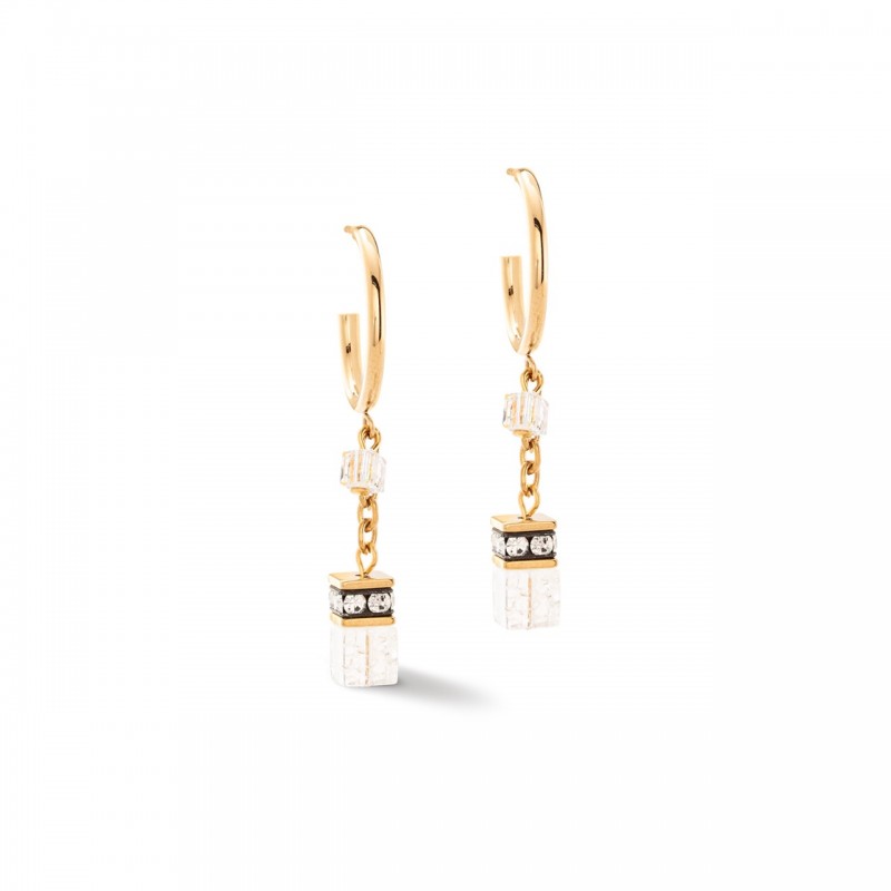 Classici orecchini GeoCUBE® in argento-multicolor coordinati alla serie Iconic Chain di COEUR DE LION.