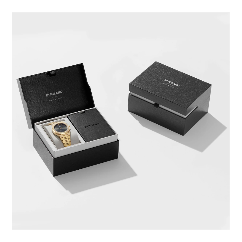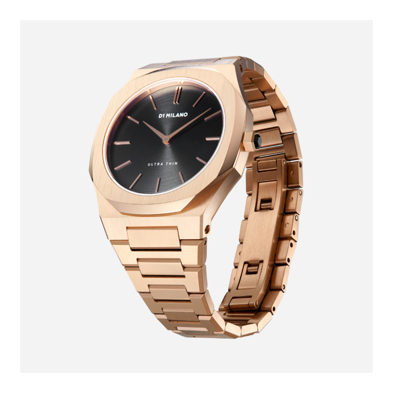 D1 MILANO Ultra Thin Bracelet orologio in acciaio inossidabile dorato, fondo antracite - Gold Night