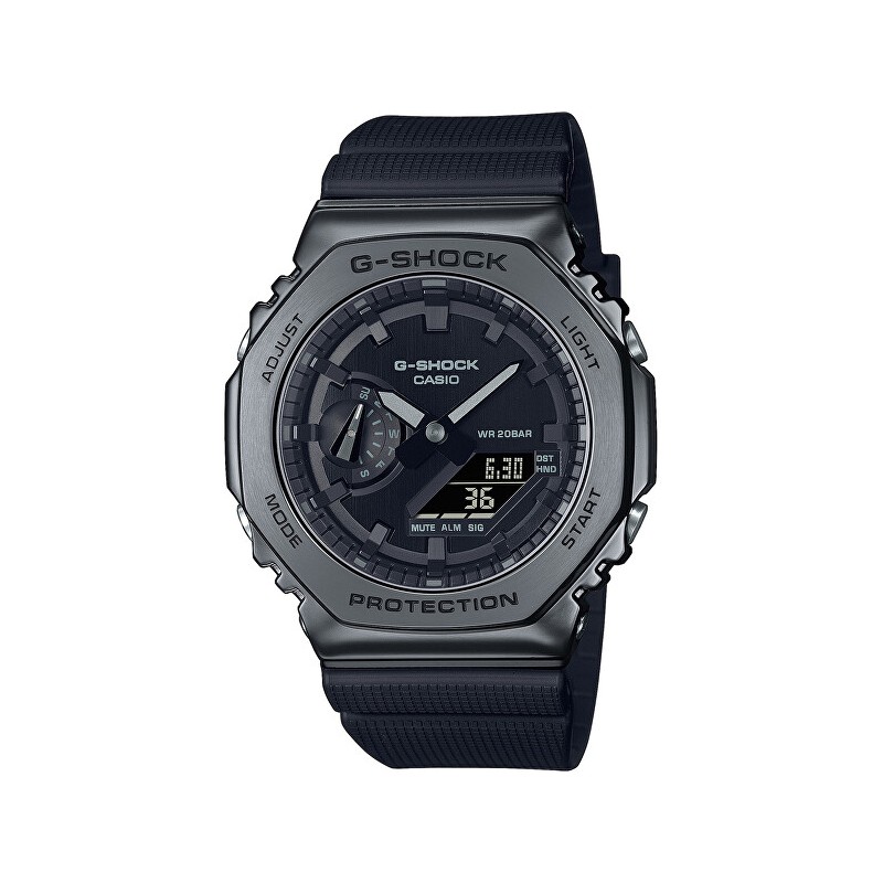 Nuovo GM-2110D, una combinazione analogico-digitale G-SHOCK basata sulla cassa GA-2100, ora con un'elegante cassa in metallo e un bracciale tutto nuovo. Forgiata e lucidata meticolosamente, la cassa ottagonale uniforme in acciaio inossidabile è parte fondamentale di un design semplice e senza fronzoli, con un look sofisticato e allo stesso tempo resistente.