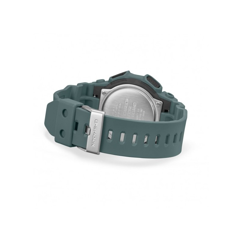 Orologio da donna Casio collezione G-Shock ref. GMA-S2100GA-3AER. Cassa verde petrolio in resina rinforzata con carbonio da 43 mm, display analogico digitale, lancette con rivestimento in Neobrite, cinturino verde petrolio in resina e chiusura con fibbia. Vetro minerale. Impermeabile fino a 20 bar.