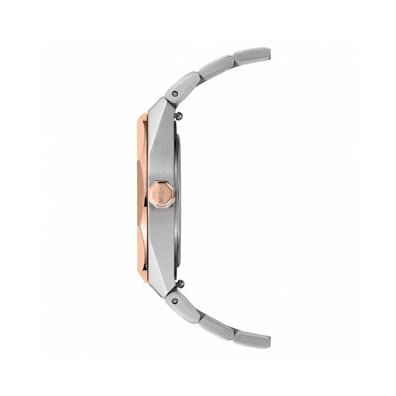 Con le sue linee pulite, la cassa equilibrata da 40 mm e la caratteristica lunetta ottagonale, il Multifort 8 One Crown sfoggia un design audace e contemporaneo. Il quadrante, strutturato con scanalature orizzontali, gioca con il ritmo e la profondità, mentre il Super-LumiNova® assicura una perfetta leggibilità.