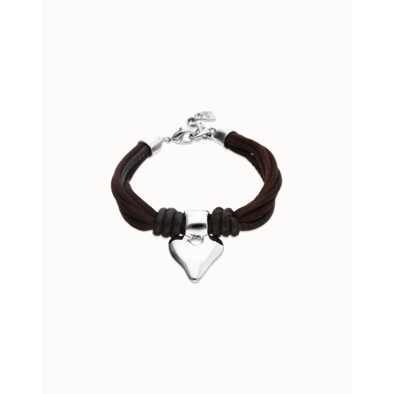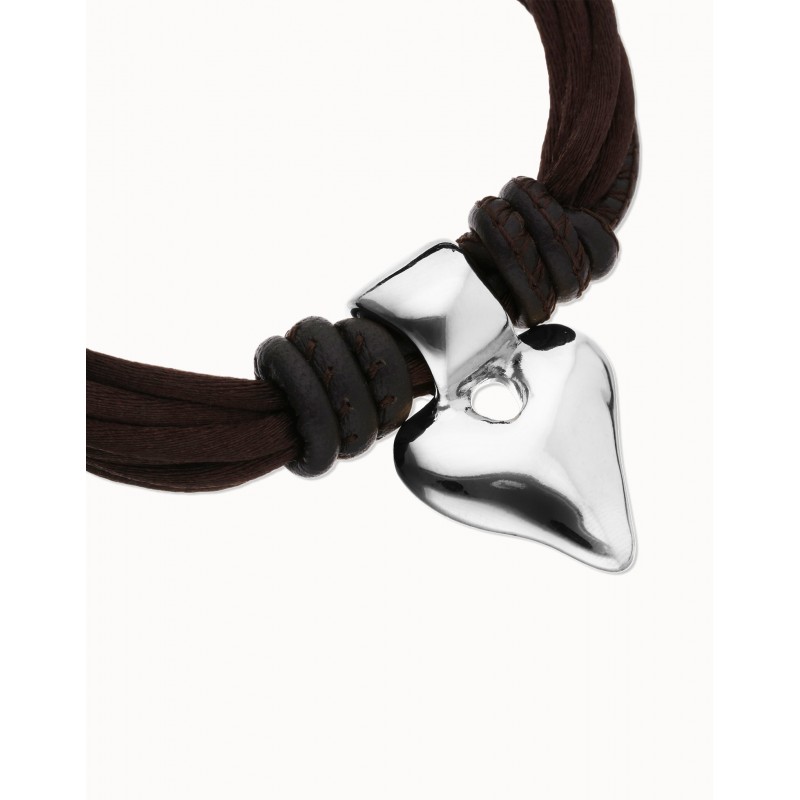 Bracciale in filo di seta e pelle marrone con cuore placcato argento.Quando qualcosa dentro di te batte forte, c’è solo un modo per ascoltarlo: lasciarti andare. La collezione Pálpito è la celebrazione del mollare le redini e lasciare che sia il cuore a indicare la strada. Un cuore fatto a mano, imperfetto ma reale. Perché il risultato di vivere così è un cuore scolpito con le tue mani.