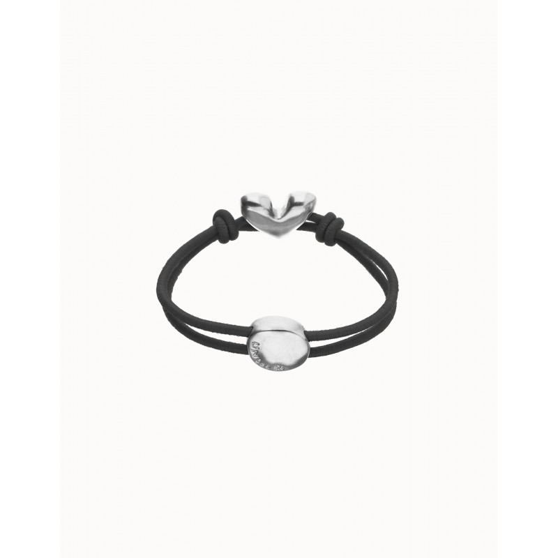 Bracciale in filo elastico nero con cuore placcato argento sterling.Quando qualcosa dentro di te batte forte, c’è solo un modo per ascoltarlo: lasciarti andare. La collezione Pálpito è la celebrazione del mollare le redini e lasciare che sia il cuore a indicare la strada. Un cuore fatto a mano, imperfetto ma reale. Perché il risultato di vivere così è un cuore scolpito con le tue mani.